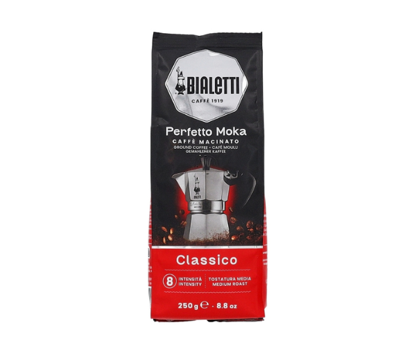 Bialetti Perfetto Moka Classico to ciemno palona kawa mielona od słynnej, włoskiej marki Bialetti. Jest to niezwykła mieszanka ziaren arabiki (50%) i robusty (50%)