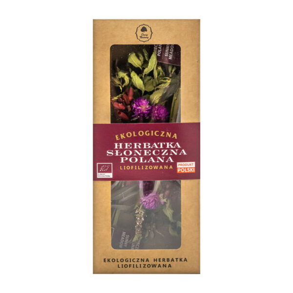 Herbata ekologiczna skomponowana z ziół o wyjątkowym, intensywnym smaku i zapachu. Składniki: liofilizowane zioła: mięta ziele, melisa ziele, pysznogłówka ziele, kocimiętka ziele, wielosił kwiat. Produkt rolnictwa ekologicznego. Sposób użycia: jedną wiązkę herbatki zalać wrząt...