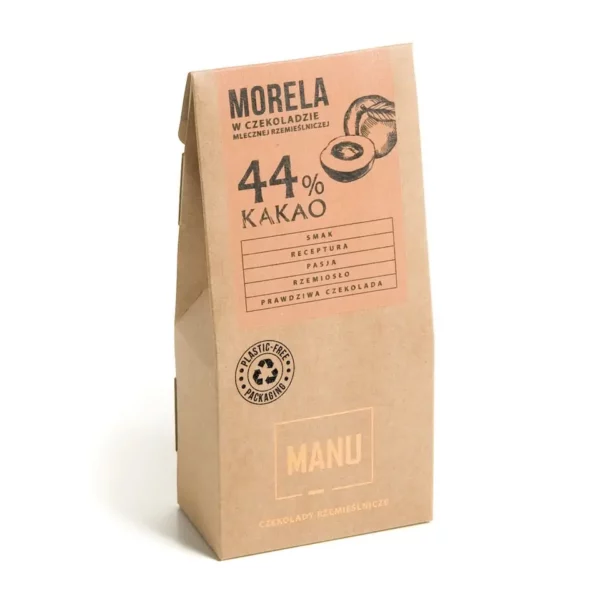 Suszone owoce moreli oblane najwyższej jakości mleczną czekoladą MANU min. 44%. Czekolada MANU powstała z wyselekcjonowanych ziaren kakaowca, nierafinowanego cukru trzcinowego oraz najwyższej jakości naturalnych dodatków.