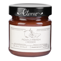 Wyraziste w smaku połączenie aromatycznej pigwy oraz ostrego imbiru w zalewie z miodu. Produkt nie zawiera konserwantów i jest odpowiedni dla wegan.
