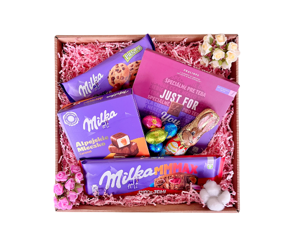 Zestaw upominkowy Wielkanocny zawierający pyszne słodkości od Milka. Nie zabraknie w nim elementów Wielkanocnych w postaci jajek oraz zająca. Idealny zestaw dla pracownika bądź klienta firmy.